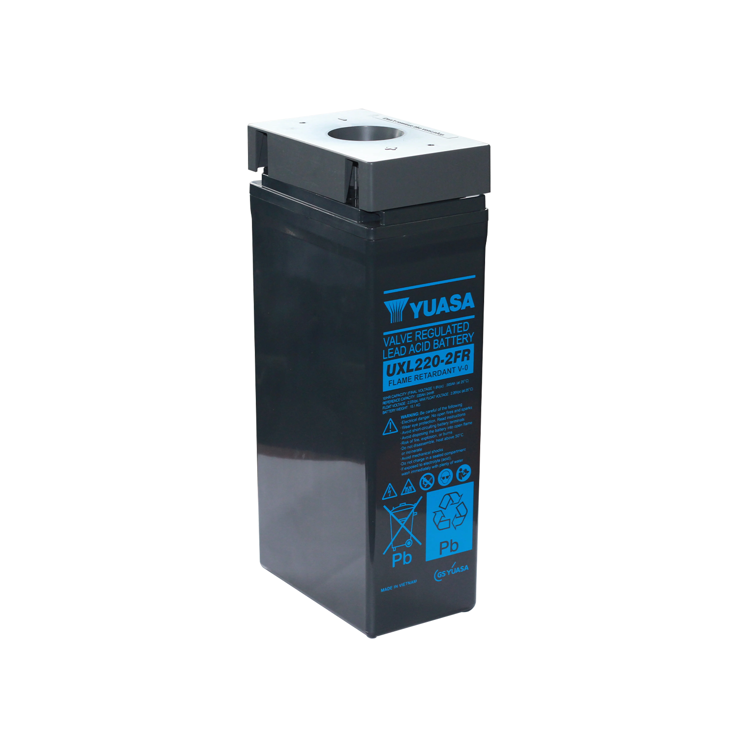 GS industrial batteries utilize AGM VRLA technology, with a 15-year design life and a UL-94 V-0 flame-retardant casing. Certified to UL standards, they ensure high durability, safety, and long-term stable operation.Commitment GS Vietnam Battery